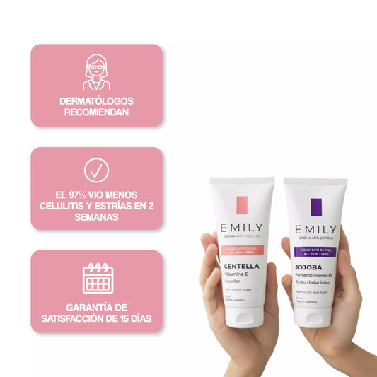 En EMILY COSMETIC entendemos lo que significa querer sentirte cómoda con tu piel. Por eso, desarrollamos formulas específicas para combatir la celulitis de manera realista y efectiva. Con activos como centella asiática, vitamina E y alcanfor, nuestras cremas y sérums trabajan en profundidad para mejorar la circulación, estimular el colágeno y reducir la apariencia de la piel naranja.