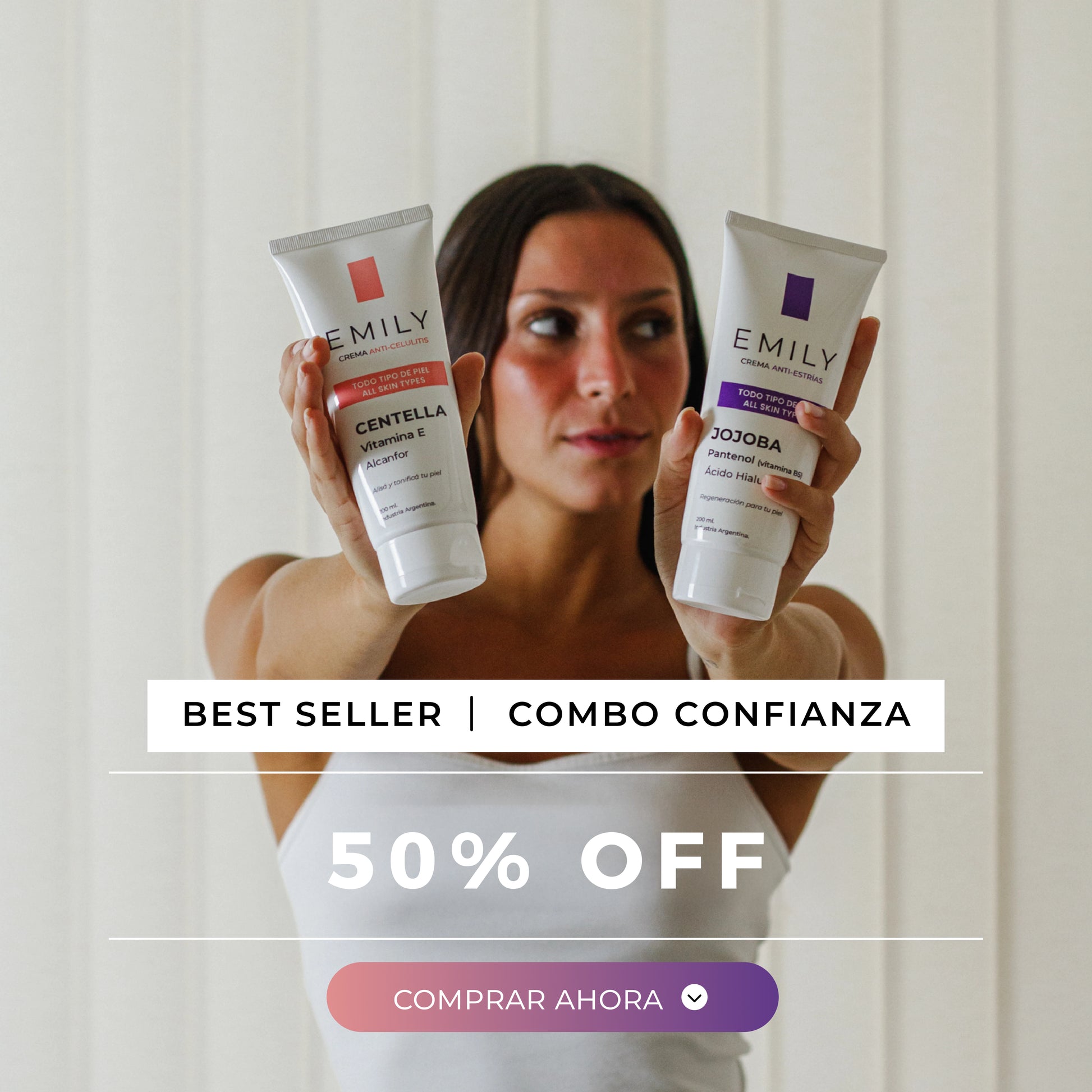 Con el Combo Confianza de Emily tu piel se ve más lisa y firme, y volvés a sentirte segura con tu cuerpo.