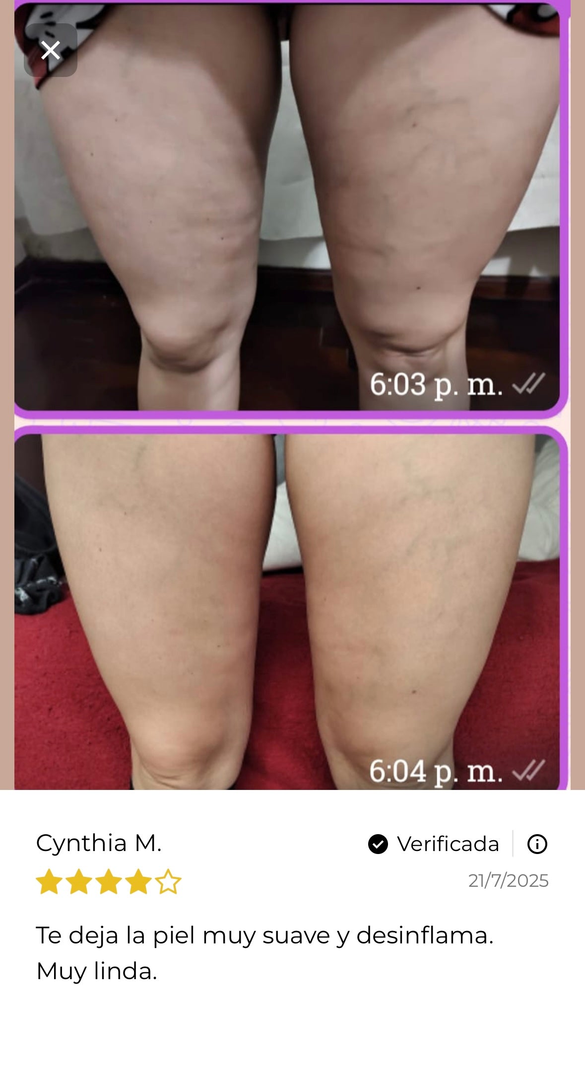 La crema ayuda a reducir el aspecto de la celulitis, y se potencia con hidratación adecuada, alimentación equilibrada y actividad física regular.