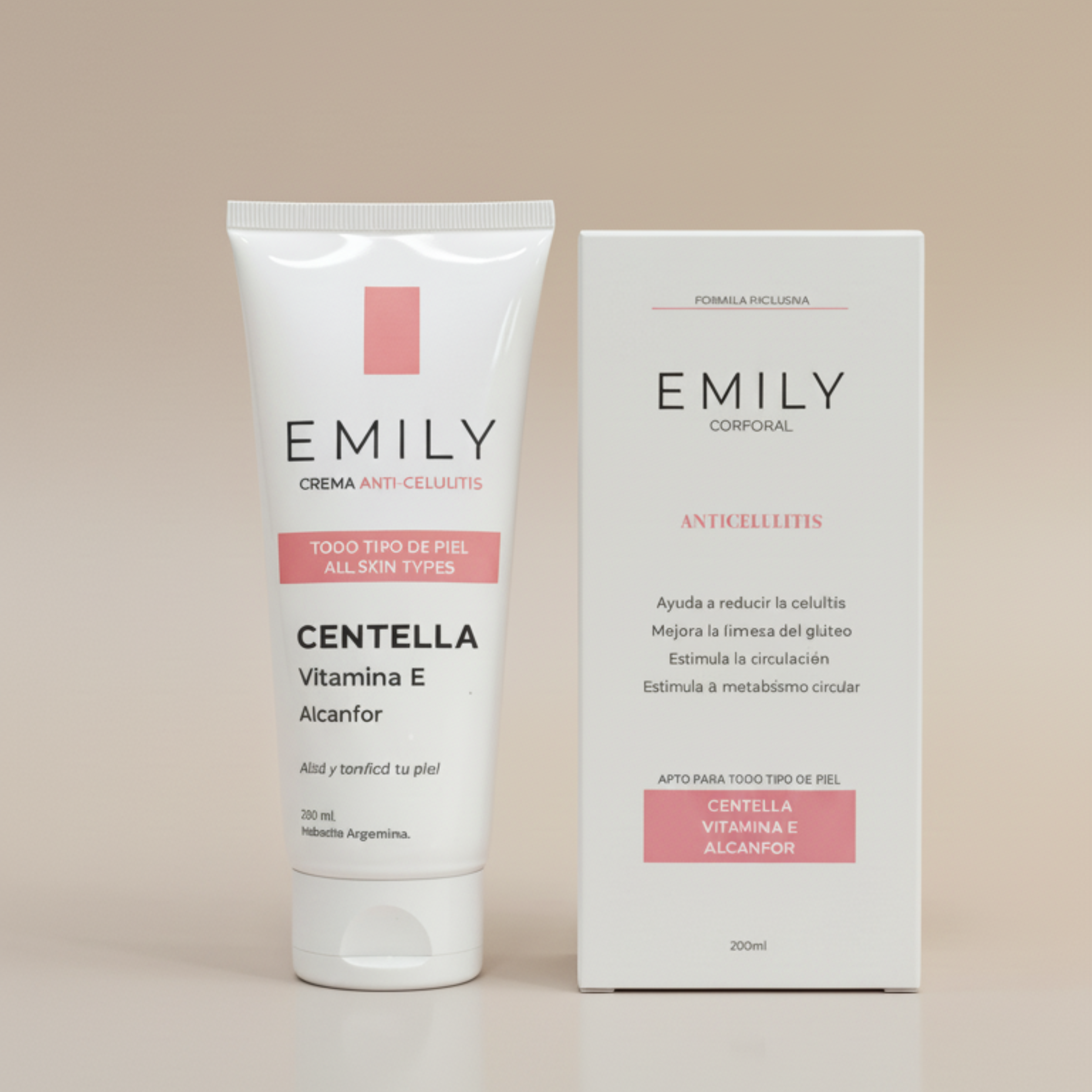 La celulitis no solo afecta la apariencia de tu piel, también puede impactar en tu confianza. Con la crema para celulitis Emily, formulada con centella asiática, vitamina E y alcanfor, ayudás a mejorar la circulación, tonificar y recuperar la elasticidad de tu piel.