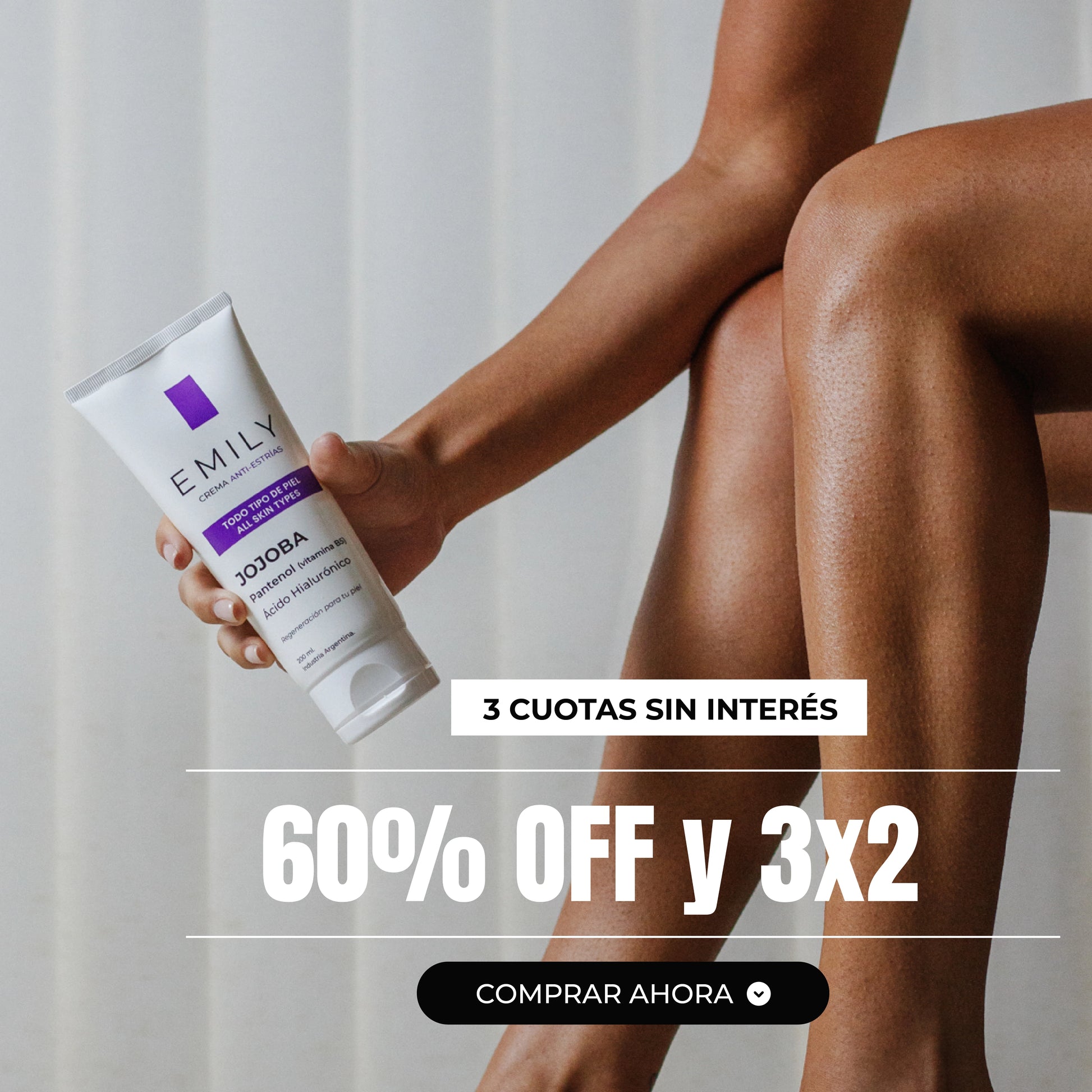 Si las estrías te incomodan al vestirte o mirarte al espejo, la crema antiestrías EMILY con jojoba, B5 y ácido hialurónico ayuda a suavizar su apariencia y a que tu piel se vea más uniforme y elástica.