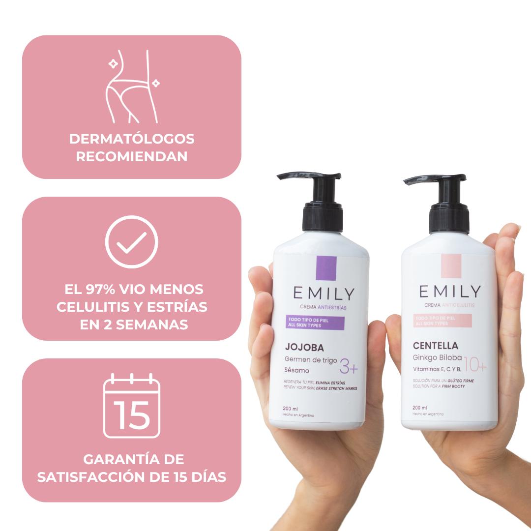 Con el Combo Potenciador de Confianza de Emily, atacás la celulitis y las estrías desde la raíz: